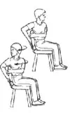 Sit with back against chair as shown. Reach upward and lean backward until you feel a stretch. Hold for a few seconds and repeat.